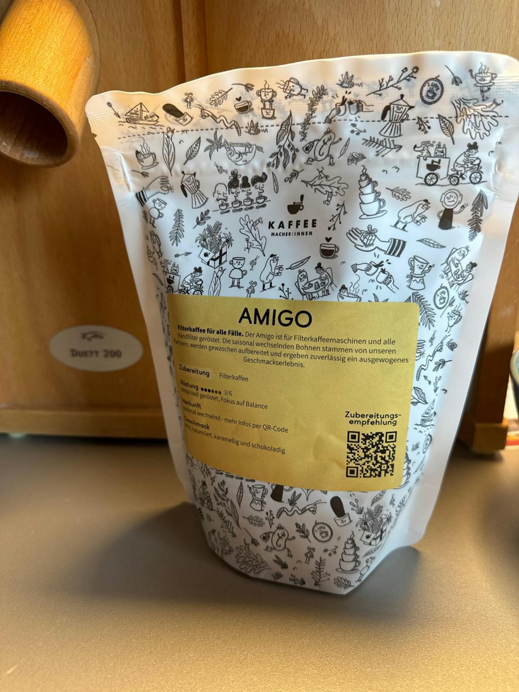 Mit dem Amigo möchten wir Filterkaffees präsentieren, die unkompliziert in der Anwendung und im Geschmack sind. Wir suchen Geschmacksprofile, die einen Fokus auf Balance, Karamell- und Schokoladennoten haben. Das sind oft gewaschene Kaffees in der Region um die 84 Punkte, die wir einen Ticken dunkler rösten als unsere anderen Filterkaffees. Die Kaffees wechseln wir saisonal, so dass wir immer die aktuelle Ernte unserer Partner für euch rösten können.